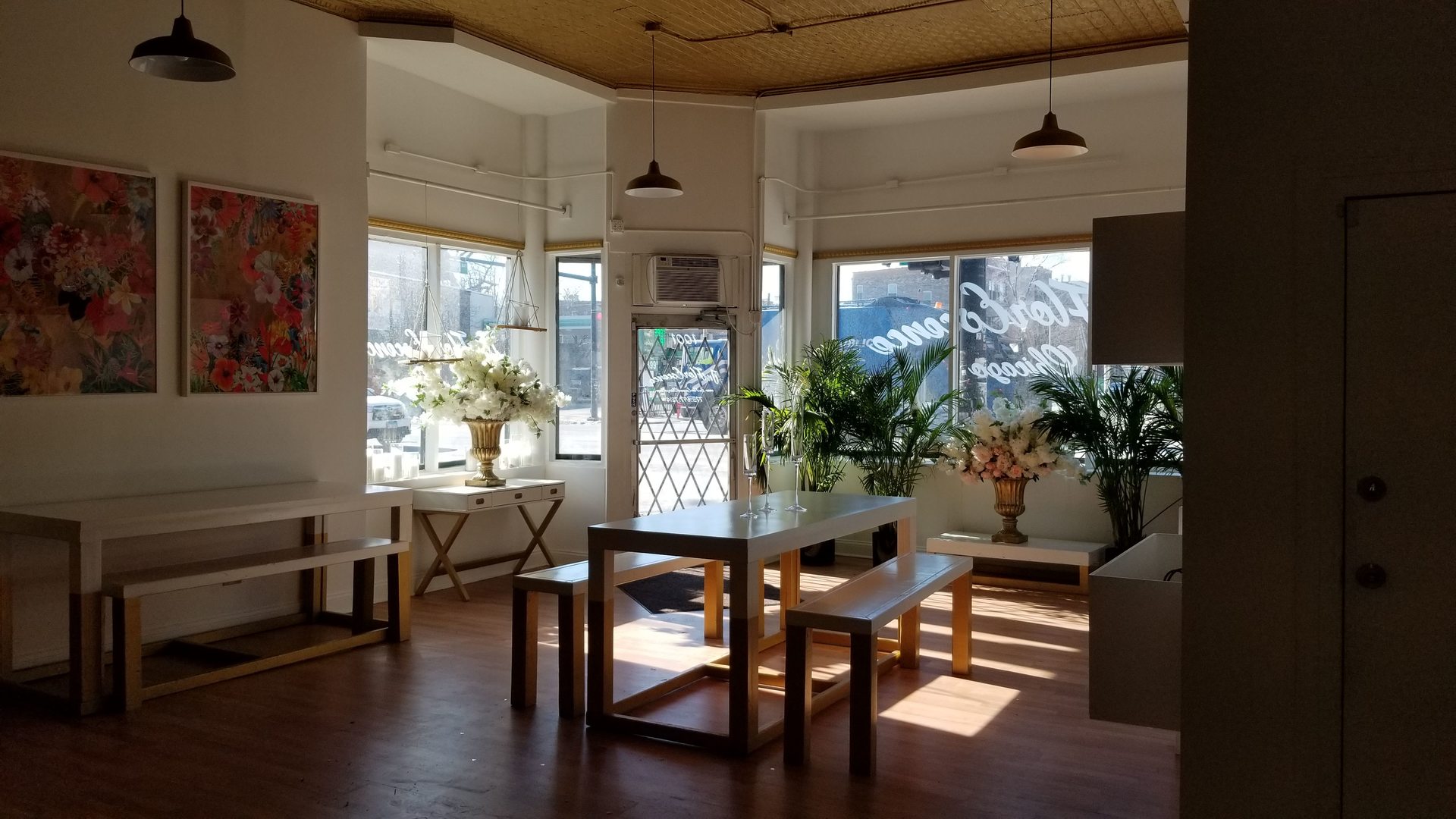 Corner location at Augusta & Western Ave. Exterior store facade with all new glass and steel from top to bottom to give this a new look. Ideal for business looking to be in a high traffic walk-in business. wide open space with 14 foot tin ceilings, half bath, wood look flooring. Ready for move in. Ideal for many businesses. Located across from St. Helen grammar school Zoning is B3-2