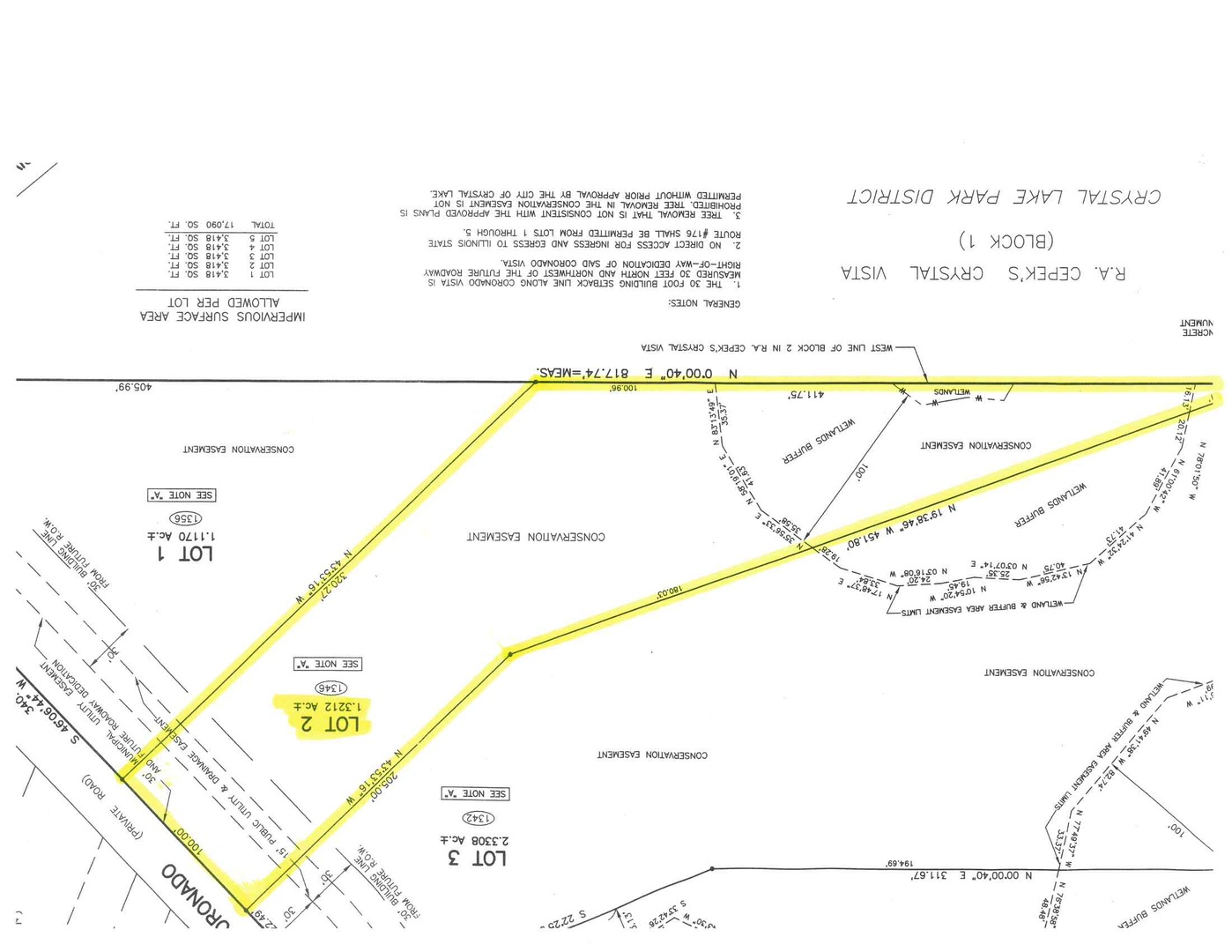 Beautiful wooded 1+ acre lot, Lot 2 of 5. build your dream home, annexed into the City of Crystal Lake. Adjacent to Crystal Lake Park District & Lippold Park. Entrance to property on Coronado Vista. Electric/Gas at sight, septic & well permitted by city of Crystal Lake.