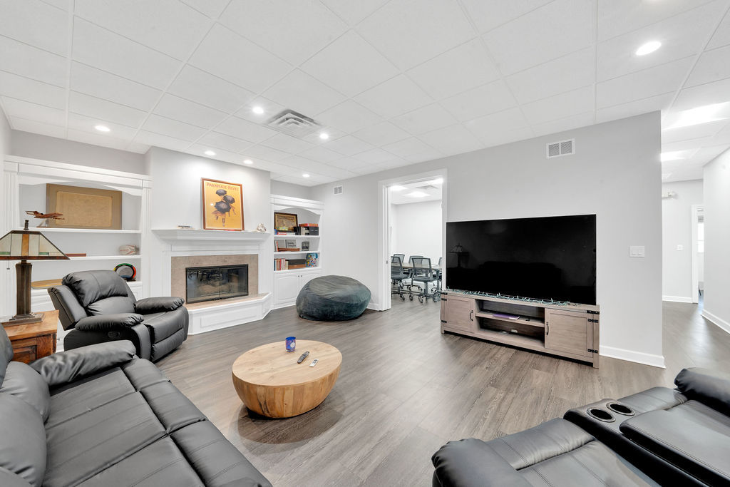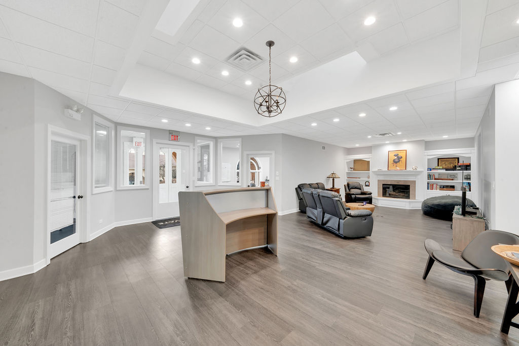 Discover prime office space in desirable North Naperville, minutes from I-88 and downtown, offering 5,611 sq ft of meticulously renovated, two-story commercial space ideal for single or multi-tenant use; the upper level features a welcoming waiting area with fireplace, seven versatile offices (one with a private bath), and a modern kitchen, while the lower level provides exterior access, a conference room, four additional offices (including a master with private bath), two kitchen/lunch areas, and open cubicle space; this well-maintained building boasts 12-foot ceilings, modern lighting, updated computer/phone wiring, a 200 amp electrical system, and ample outdoor parking, presenting a flexible layout with potential for duplexing or separate rental, perfectly suited for professional offices seeking a sophisticated and functional workspace.