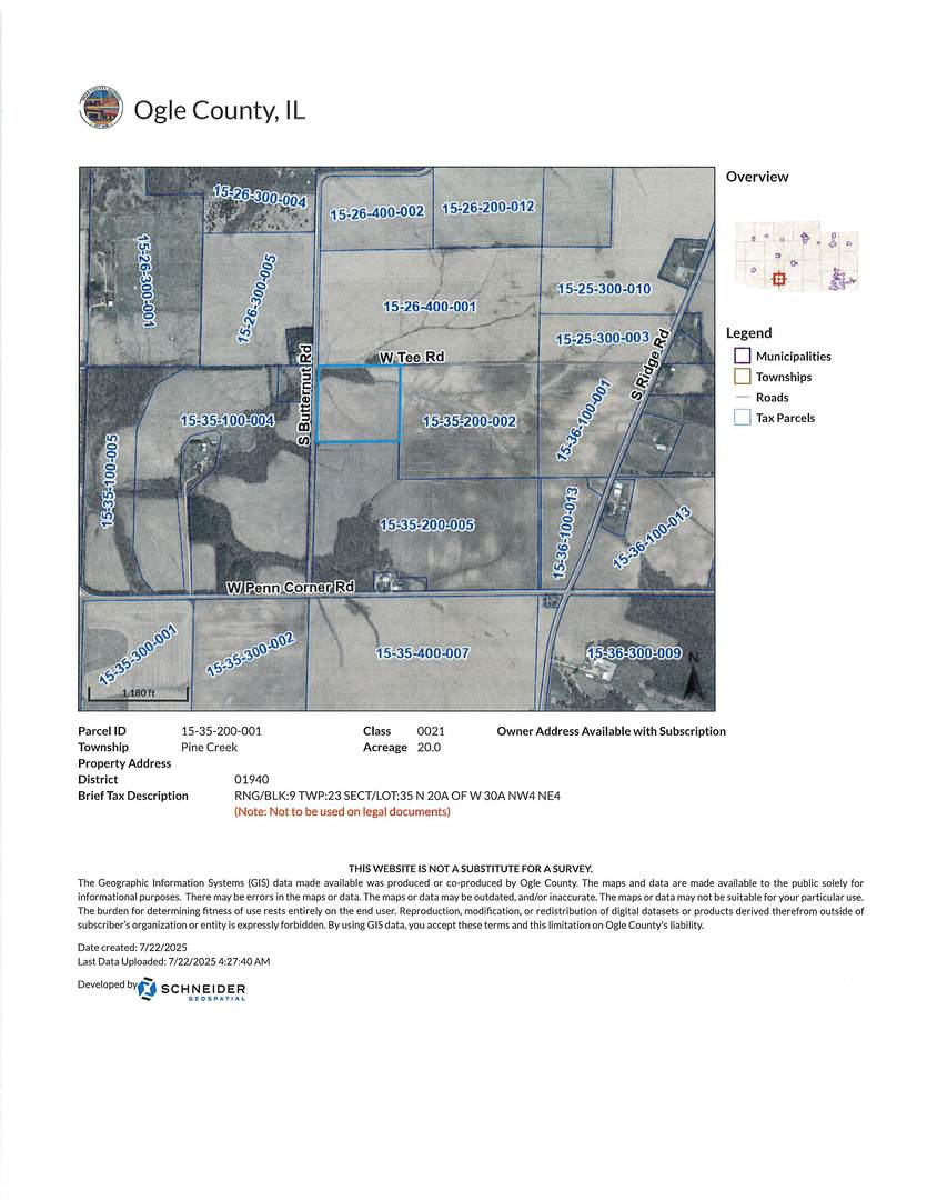 Check out this 20 acre parcel for sale in Pine Creek Twp. This hard to find property offers an opportunity for row crops as well as recreation and was reported to be a buildable parcel according to the Ogle Co. Zoning Office. Lot dimensions shown are approximate. Buyers are encouraged to verify all information prior to making an offer. This parcel is lease free for 2026. Possession is subject to the seller removing the 2025 crop. The PI is 113.4 and the soils are Birkbeck and Senachwine Silt Loam. This parcel is across the road from a 43.31 acre farm that is also listed for sale. See MLS number 12427339 for more information.