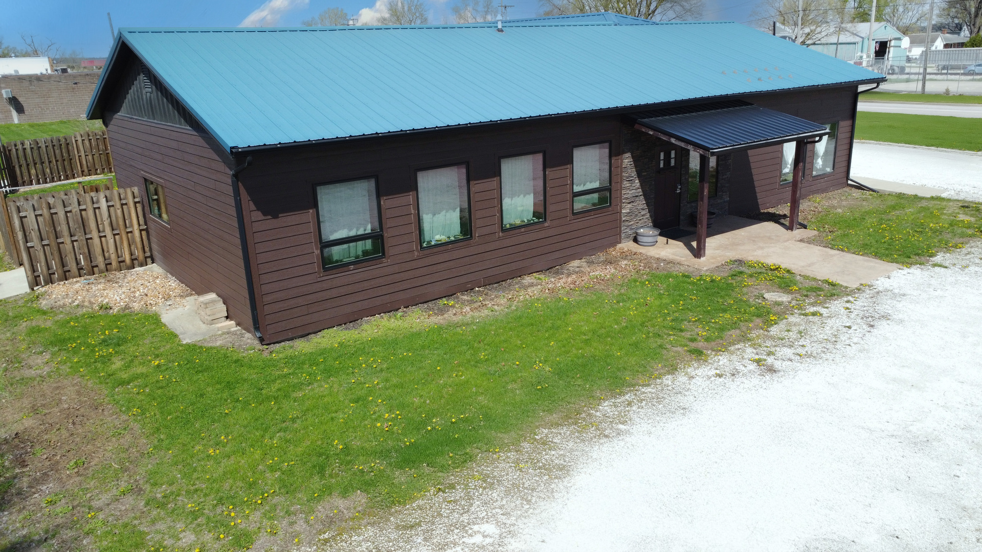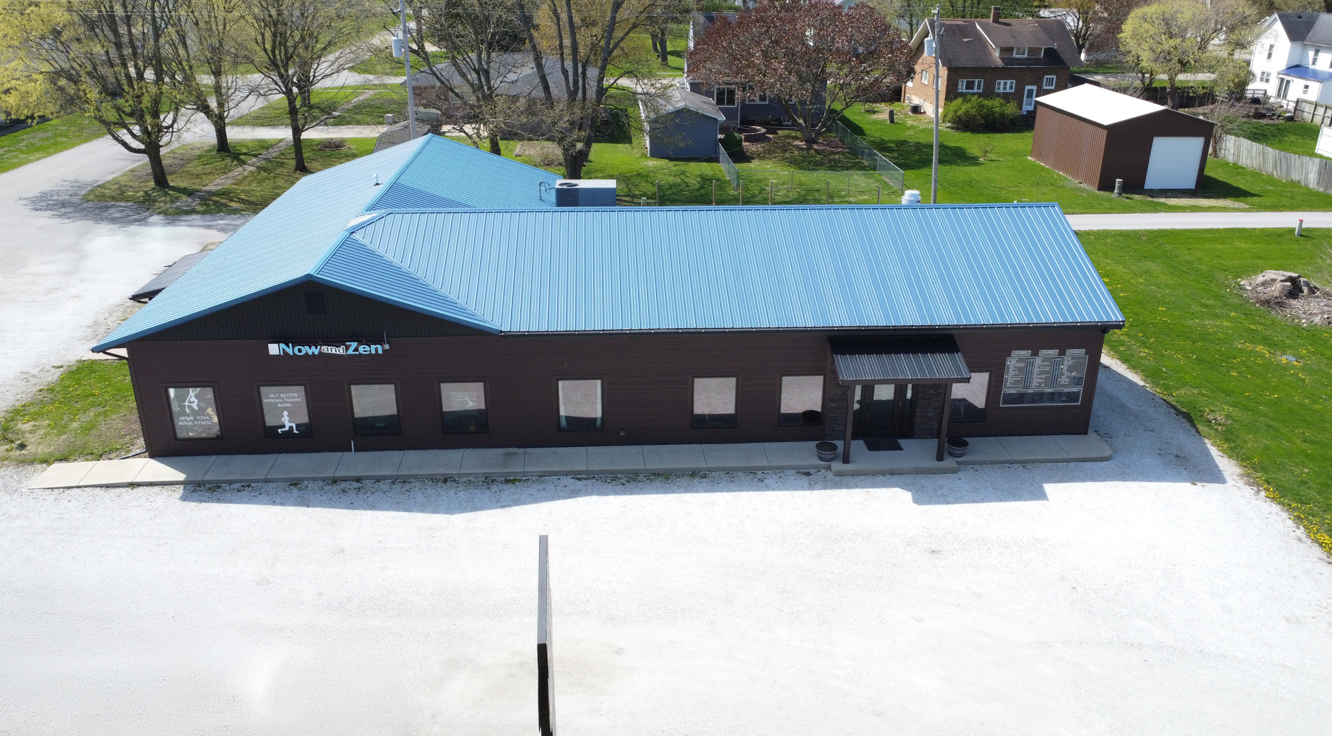 Welcome to 201 E Main St – a custom-built, rustic chic commercial gem located at the high-traffic crossroads of Route 24 and Route 49. Spanning 3,300 Sq. Ft. on a 150×120 lot, this uniquely designed property supports three business ventures under one roof: a yoga studio, Pottery studio, and the former Dragonfly Cafe. Features include tall ceilings with custom lighting, shiplapped walls, heated stamped concrete floors, Pella windows and doors, and handcrafted shelving throughout. The cafe space seats 40, includes a kitchen, drive-up window, and direct access to an enclosed patio with seating for 20+. Multiple entry points offer flexibility, including a shared foyer, massage/office room, and additional storage. Ideal for entrepreneurs or investors seeking charm, visibility, and versatility in one thoughtfully curated space.