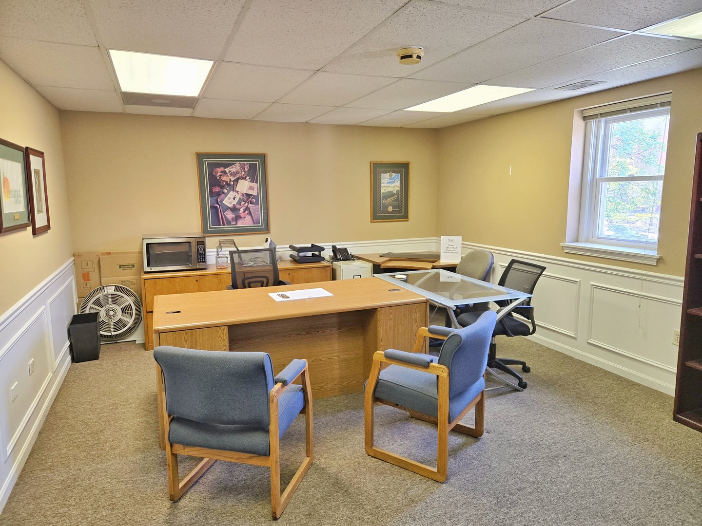 This office space for rent in downtown Naperville is ideally located near bustling retail shops and popular restaurants. With two parking garages within walking distance and a scenic backdrop of the DuPage River, this space combines convenience with a pleasant work environment.