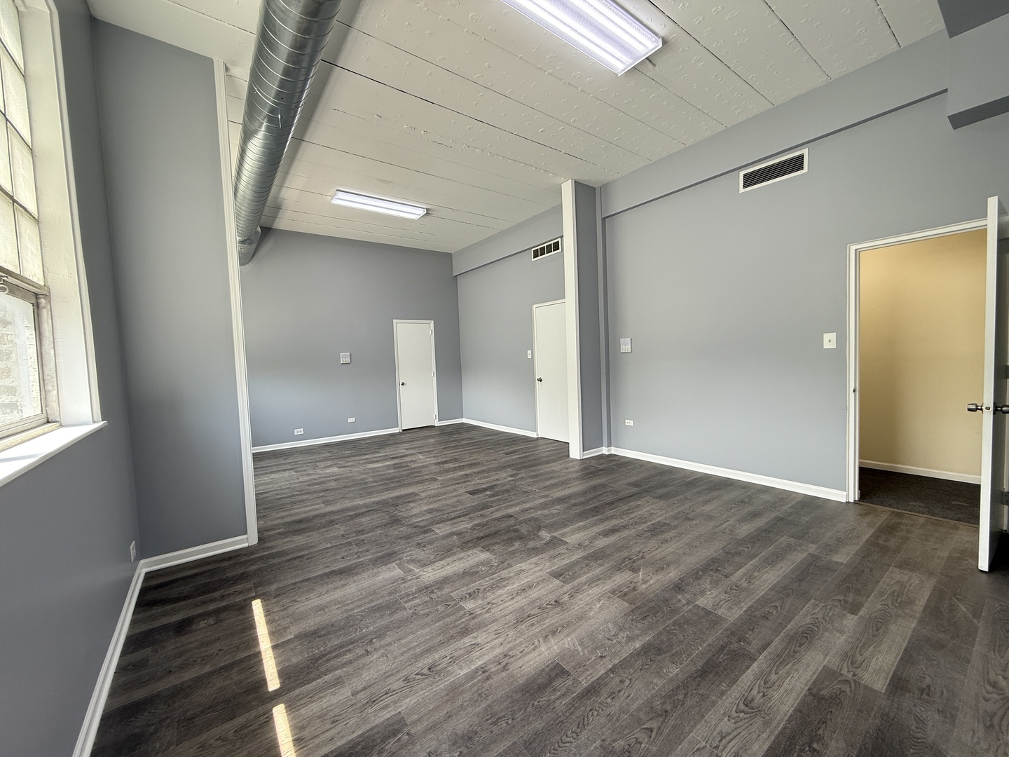 Sunny 656 SF second floor updated office space near the heart of Bucktown with private bathroom & shower. High ceilings through out. Could be sectioned off into separate rooms/offices. Brand new LVP flooring. Freshly painted. Easy one block access to the Kennedy Expressway, two blocks from the Armitage Metra Station, and a short walk to CTA bus 50 and 9 and optional pay parking available nearby. Owner can build to suit. Electricity, gas, heat, and A/C and water included.