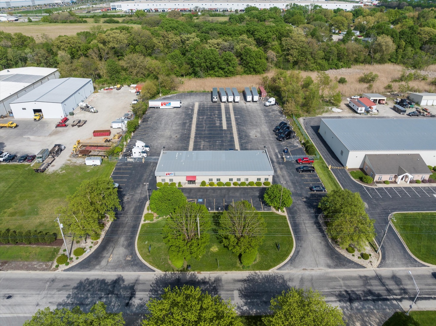24051 S Northern Illinois Drive is perfectly positioned on approximately 3.42 acres of land, offering ample space and flexibility for your business needs. Building is Built in 2005, 6,ooo sqft. modern office. Paved yard fits 40 parking spots for trucks and trailers. Fenced and secured with electronic gate. Drivers lounge/check-in room