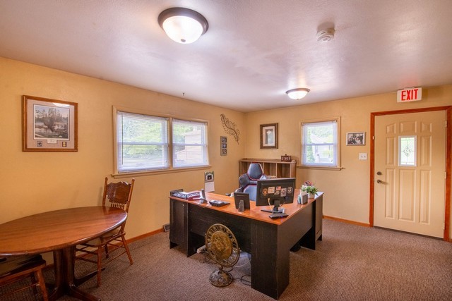 High-volume traffic(25,000 +/- vehicles per day)on 1.2 acre, on the path to Lake Geneva from I-94. Long legacy of successful small-business owners (originally a meat market, then Bear Realty, a boat shop, & currently Hasting Carpet showroom (26001 75th ST). Log-sided main building(built 1952) is positioned nicely for potential drive-through. Full basement has been renovated. Second address on property is 26011 75th ST duplex (built 1960): upper is leased residential; lower is used as commercial. Garage built in 2019, is 24’x24′ & 10’x12′ shed, fenced refuse coral. Property was annexed into Village of Paddock Lake in 2011, municipal sewer installed to store & duplex, TWO accesses on Hwy 50 remain. Ample parking.