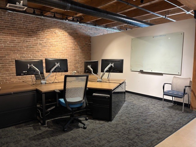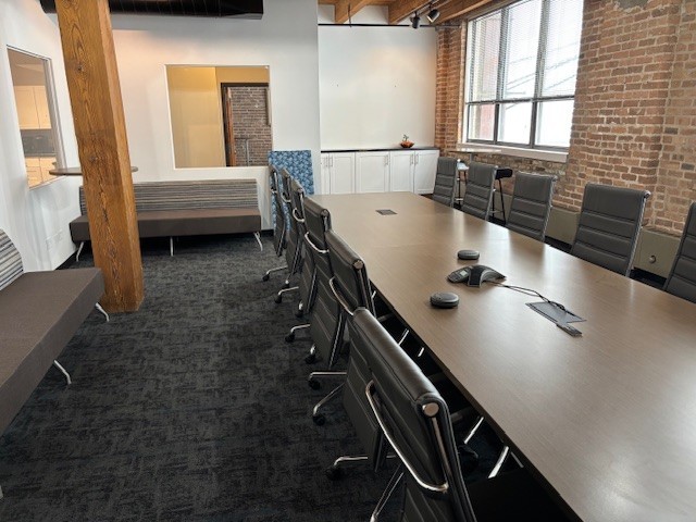 Furnished office space!! 4,937 SF of heavy timber loft office space. There are desks, workstations (6 with double monitor brackets), tables/chairs, a conference room table that seats 12, 2 TV’s whiteboards, file cabinets, kitchen equipment and a LOT more. All the furniture in the photos stays in place for the incoming tenant. 2 private window offices, an oversized conference room, 5 open (3 desk) work stations, a kitchen/break room and 3 storage closets. 12+ ft high wood beamed ceiling height. Lots of exposed brick give the suite charm and character! The space has it’s own, internal, men’s and women’s washrooms. Elevator building and the elevator opens to a private foyer for this floor. The space has an alarm. Building signage available. The south side of the space has a full window line. Existing furniture and equipment list that is included is available. Tenant pays $ 1.20/sf/yr for electric