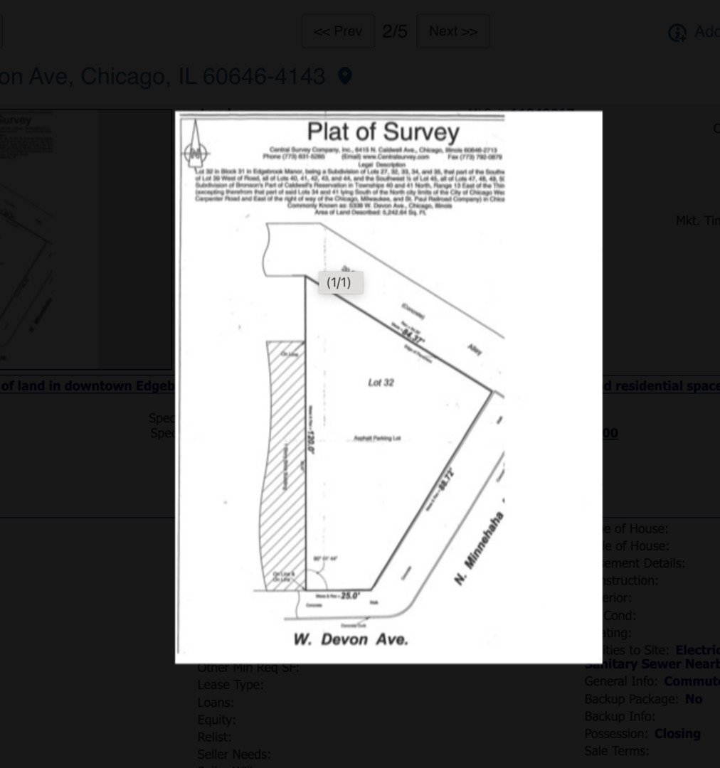 Vacant piece of land in downtown Edgebrook. We have drawings for a 2 story mixed use building with 2 dwelling units over commercial. with 7 parking places in the rear.