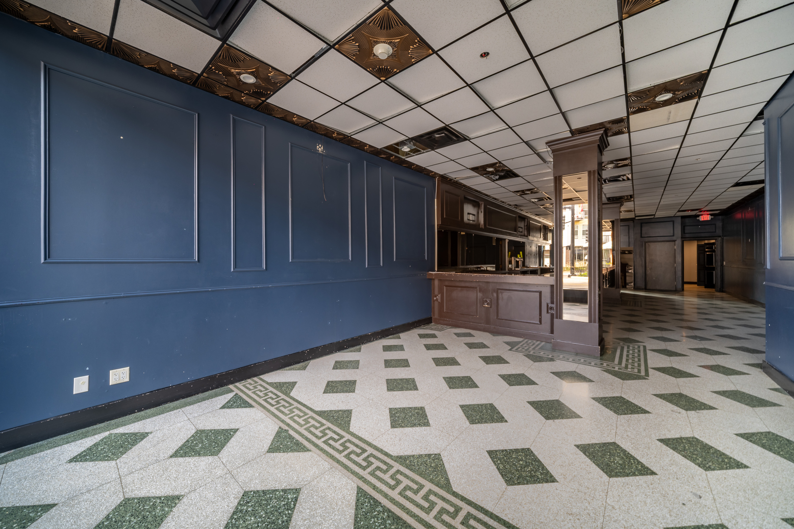 Former bar and event space available in downtown Elgin. This space is configured with a bar fronting on S. Grove Ave. and an adjoining event/party space which fronts on S. Riverside Dr. Both spaces are in good condition and ready for occupancy. The bar space has access to the basement. This building is adjacent to a very large surface level City owned free parking lot. The two spaces may be divided. There is additional event space available on the same floor and also basement space that could also be leased. There will be a prorated monthly utility charge payable by the tenant.